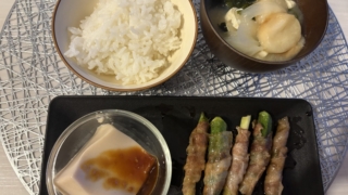 🍽️ 3品献立:アスパラ豚巻きと市販ごま豆腐の和定食 レシピ集 🥢